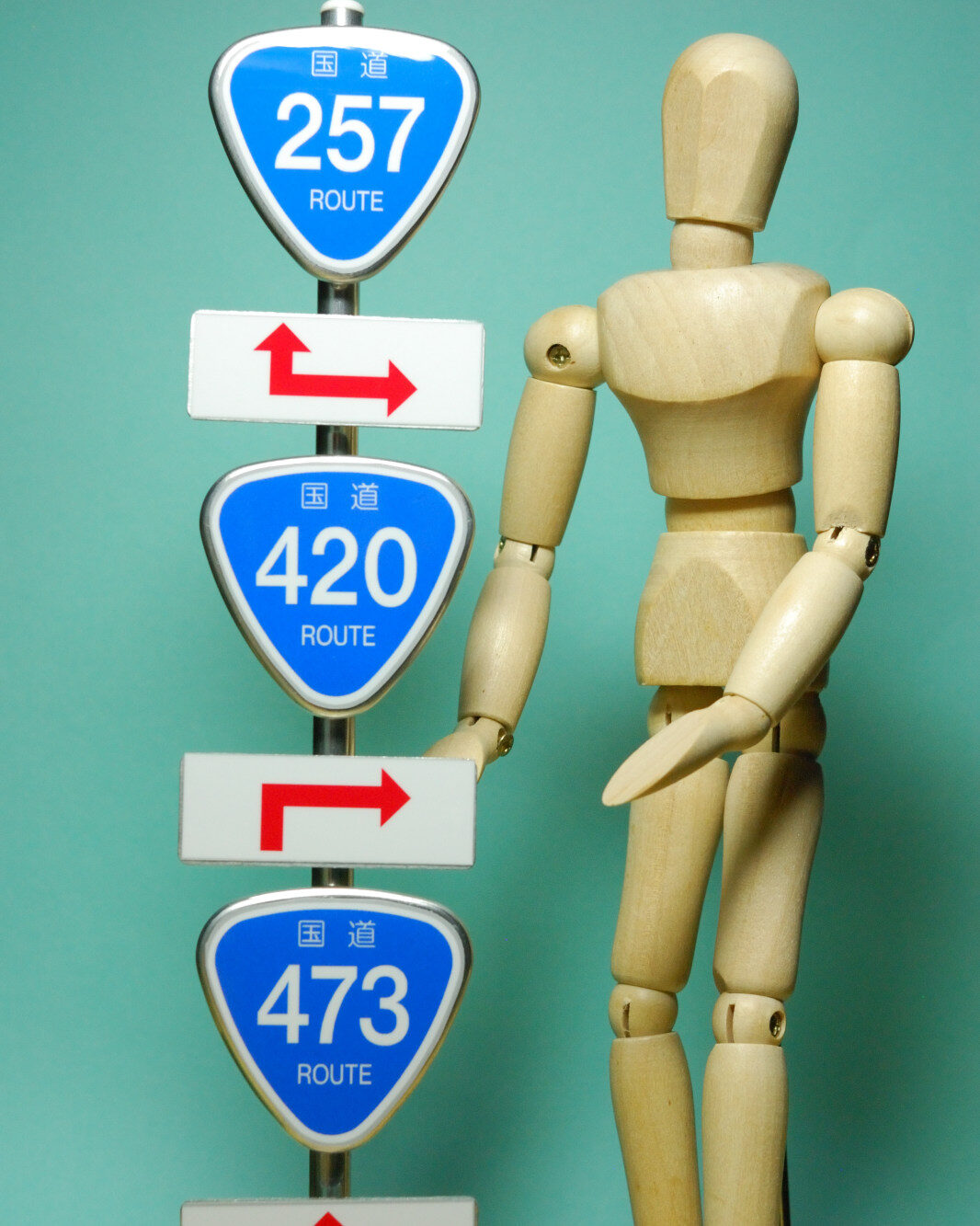 おにぎり工房のミニチュア国道標識は、実物同様の硬質アルミ合金で作る本格派。実際の交通標識にも使用されているフチを裏側に丸め込むコダワリの構造です。
