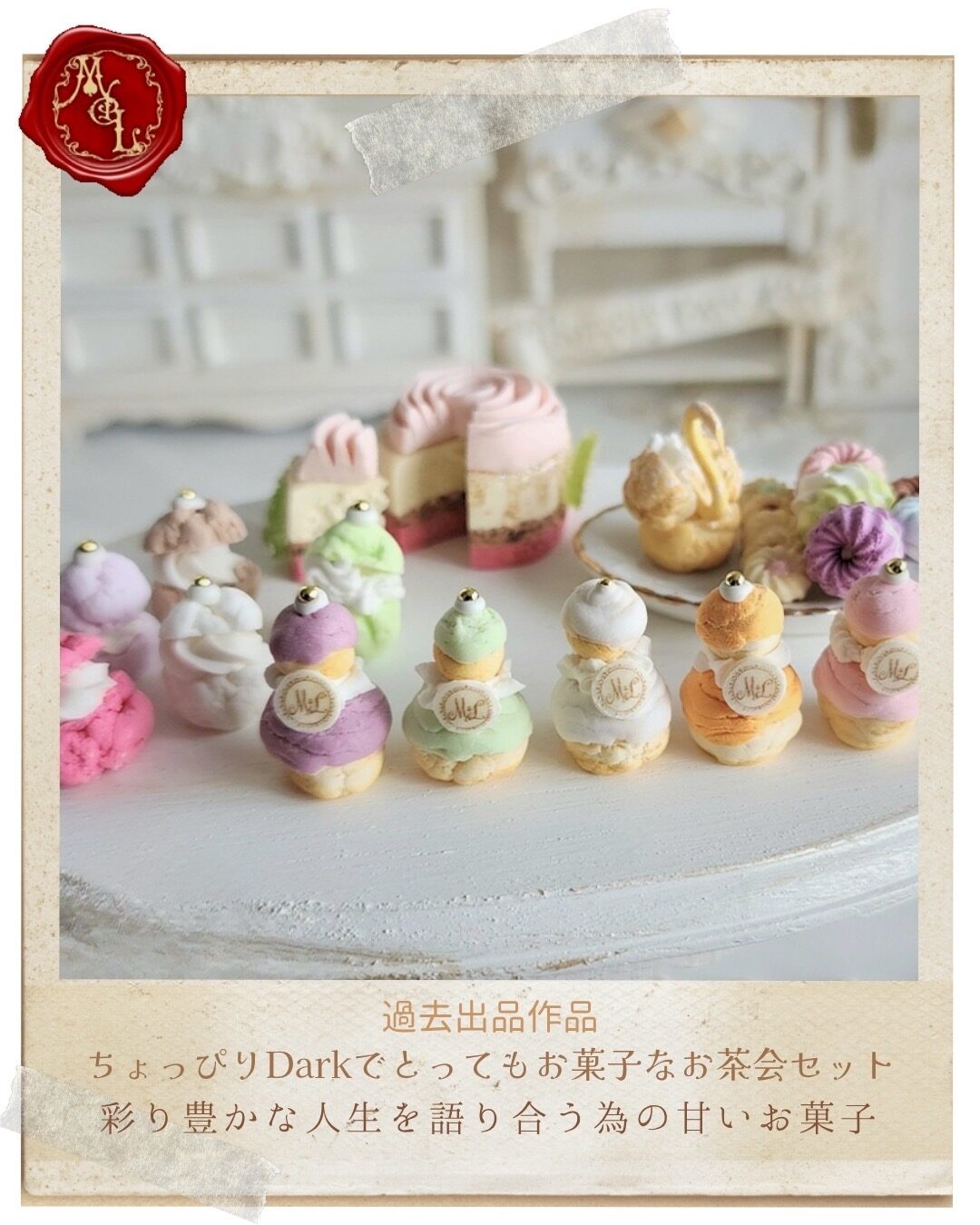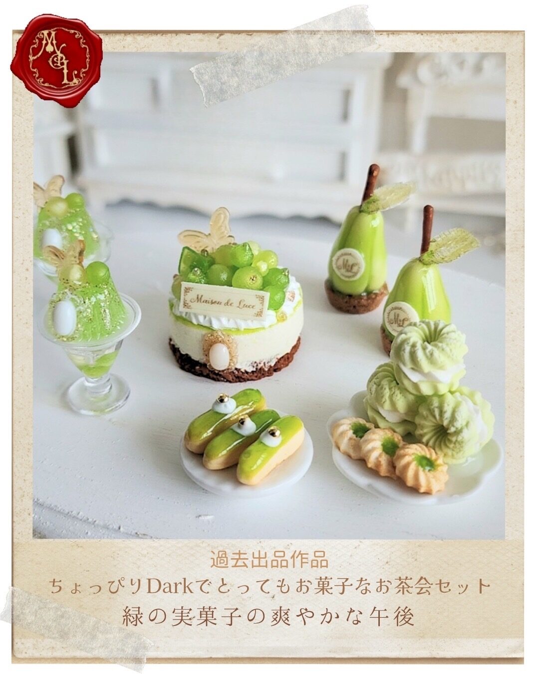 Maison(家)とDolce(お菓子)がくっついて"Maison de Luce(光の家)" 生クリームの塗りが粗かったり、クッキーの形がちょっぴり歪だったり、ドーナツは食べかけだったり・・・ 樹脂・軽量粘土で''完璧な不完全''をテーマにした、ちょっぴりダークでとってもお菓子なフェイクスイーツを制作・販売しております。