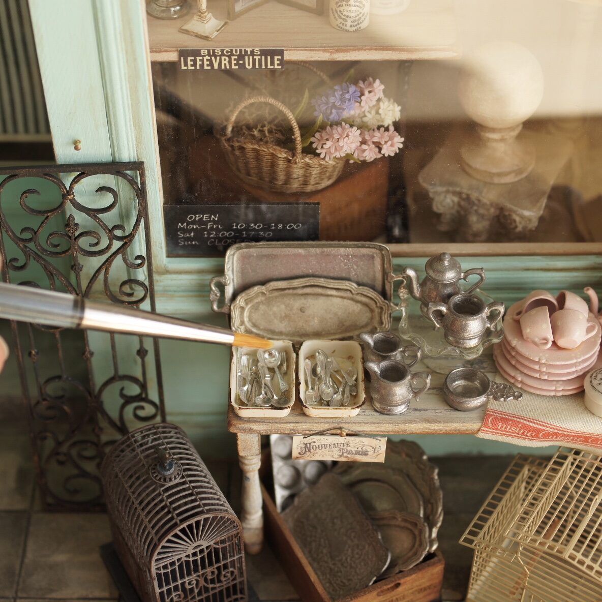 いろいろなクラフトを経て、1990年頃より独学にてドールハウス制作を開始。 建物・家具等の木工制作を得意としています。 近年では、ドールハウスのレイアウトにも 欠かせない植物を中心に制作。